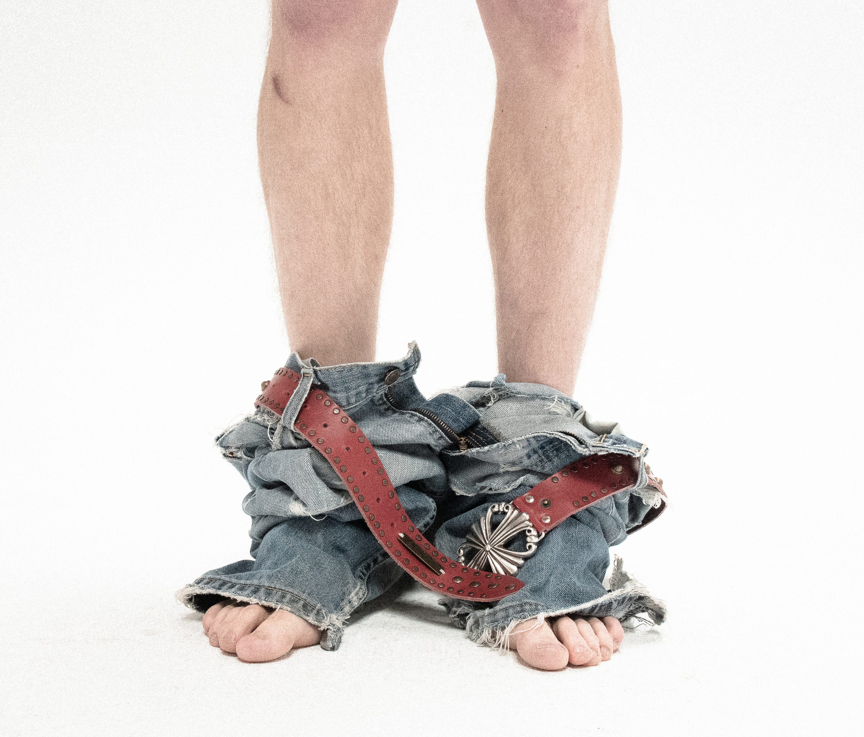 The Fetish Belt is the boldest in the LeDuC belt series — a wide, commanding piece crafted in deep red cowhide leather, fully adorned with antique gold studs and detailed with a central line of oval dome-shaped studs.
