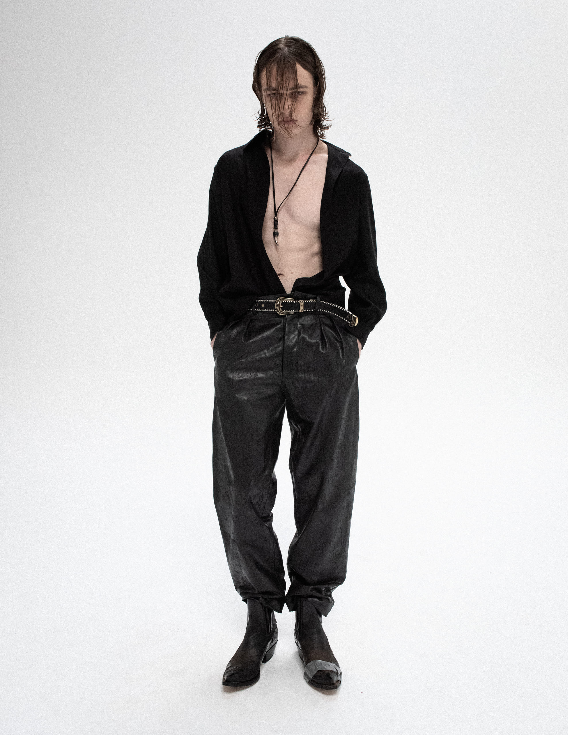 A symbol of craftsmanship and control, the LeDuC Belt is a medium-width statement piece crafted in black cowhide leather, fully adorned with antique gold studs and finished with a vintage-inspired antique gold buckle.