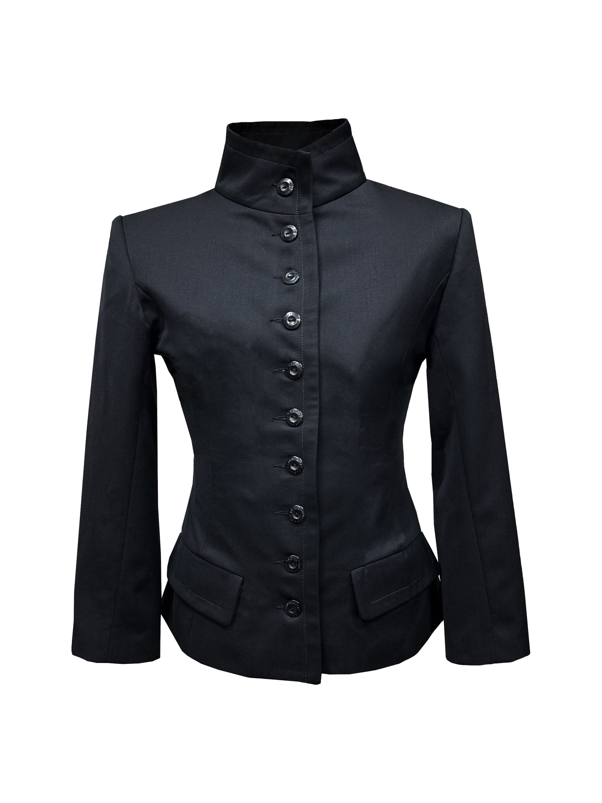 - Design Details: High mandarin collar, 10-button frontal alignment, and elongated 6-button vents.