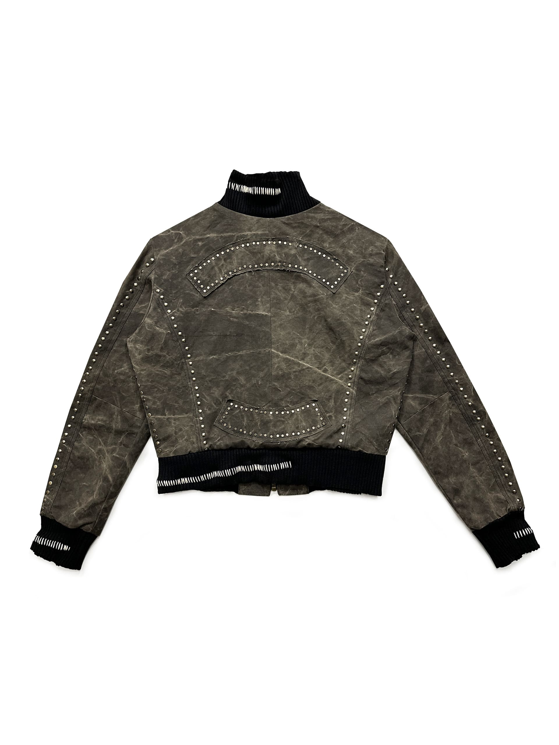 - Hand-Applied Rivets: Placed one by one, by hand, throughout the jacket.