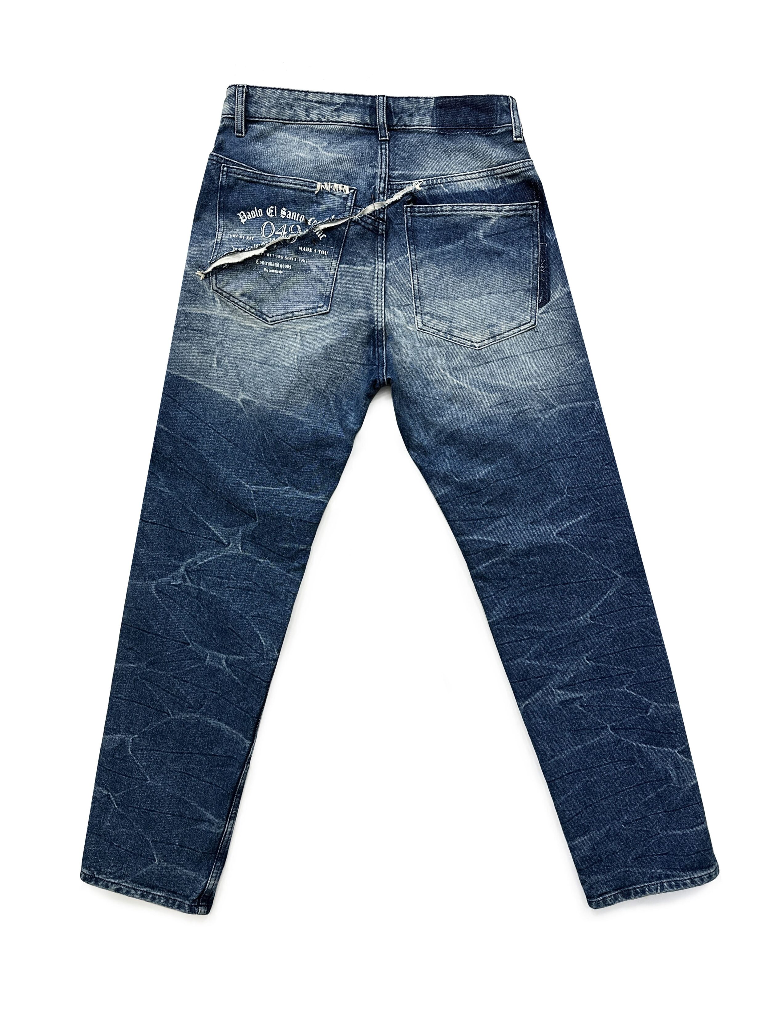 Cut in a regular fit, the front panels are hand-cut and overlapped, reinforced with triple-stitched seams that speak to both durability and design integrity. The back features a custom construction, finished with tonal bias binding and detailed hand-stitching on the interior — elevating traditional denim to a tailored art form.