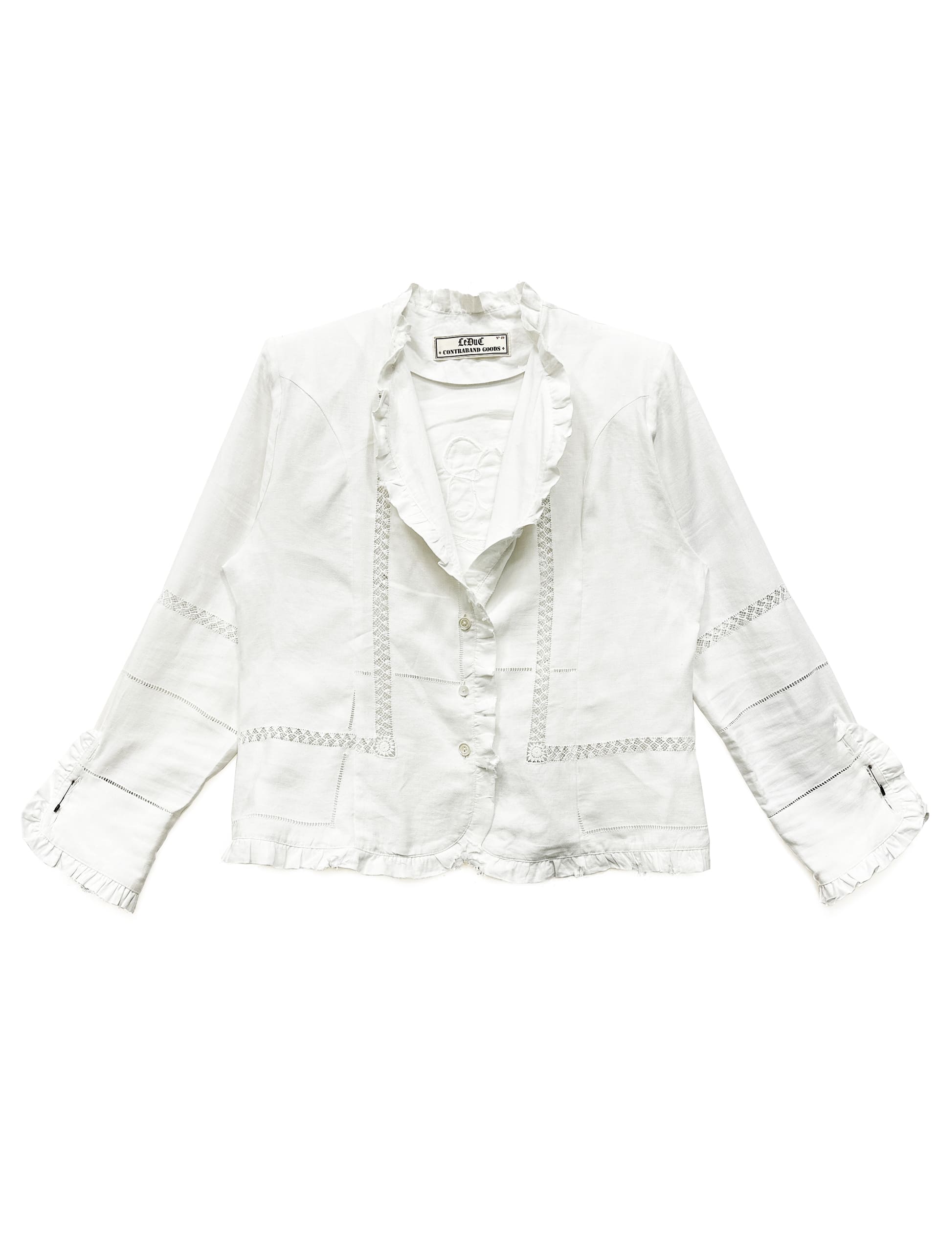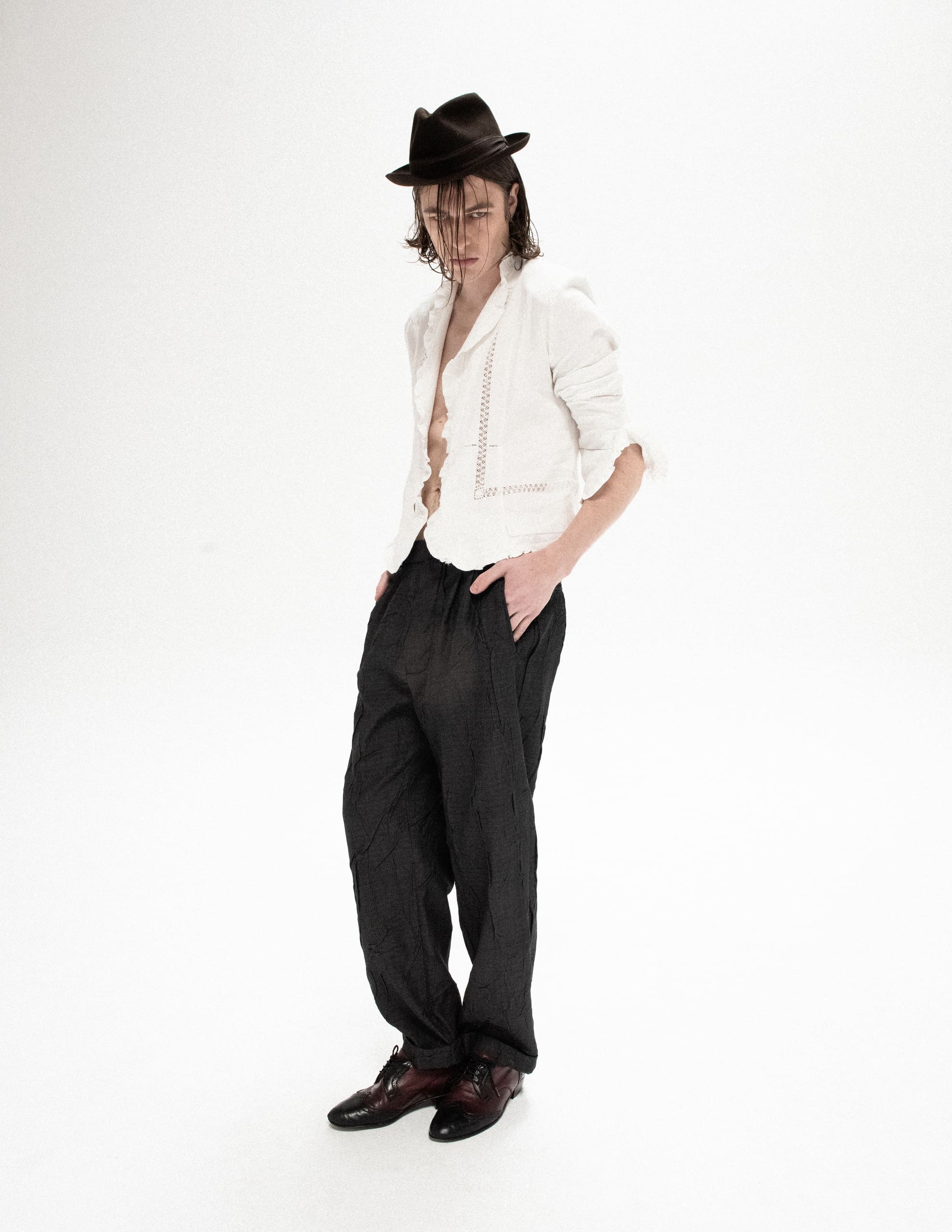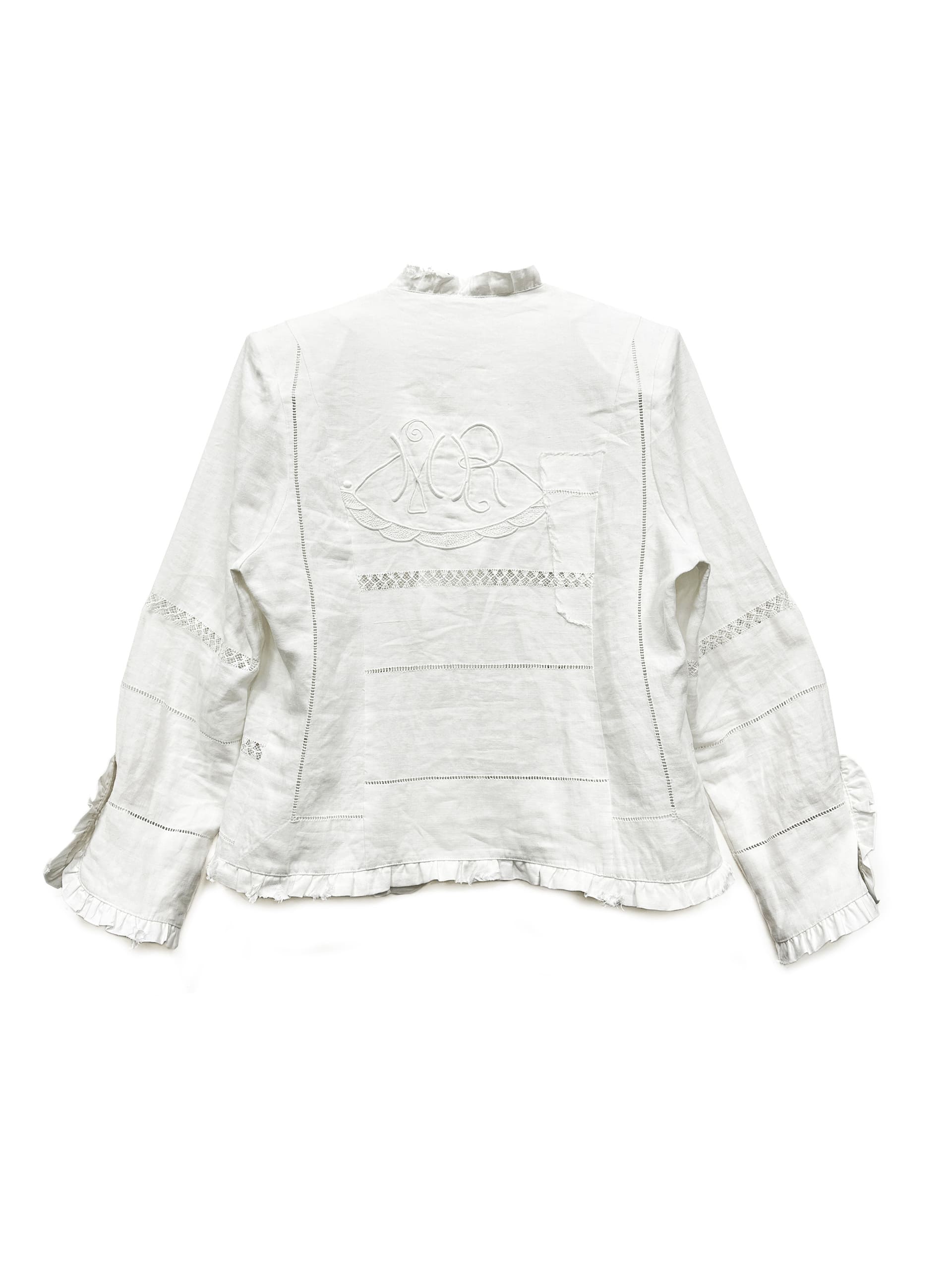 Crafted from 100% antique French cotton sheets, “The Heirloom” by Paolo Leduc is an unrepeatable piece of wearable art. Featuring Victorian-inspired ruffles and raw atelier-style seams, it’s not just a shirt—it’s a legacy stripped bare.