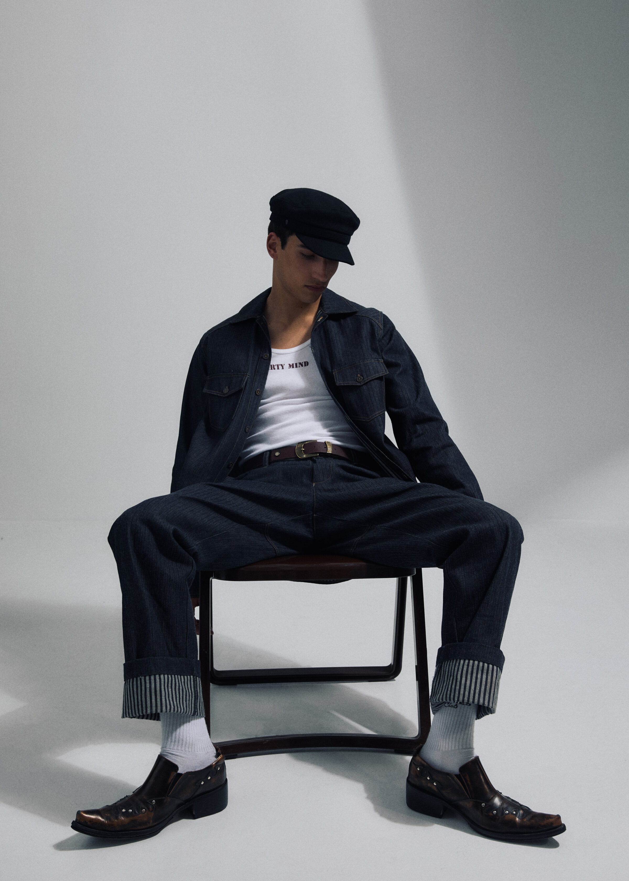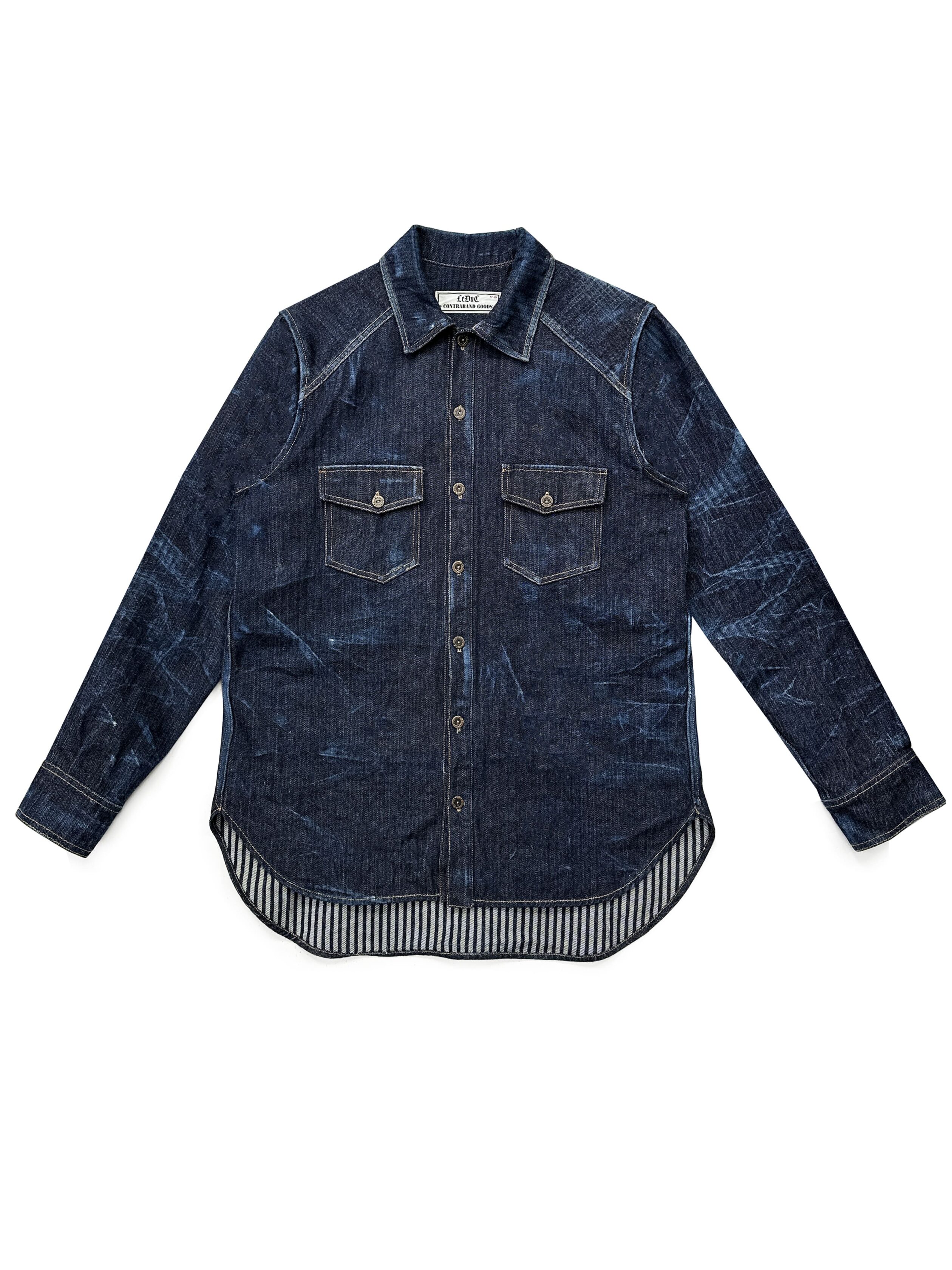 Regular fit, workwear shirt in woven striped denim. Two front pockets. Branded buttons. No Gender.