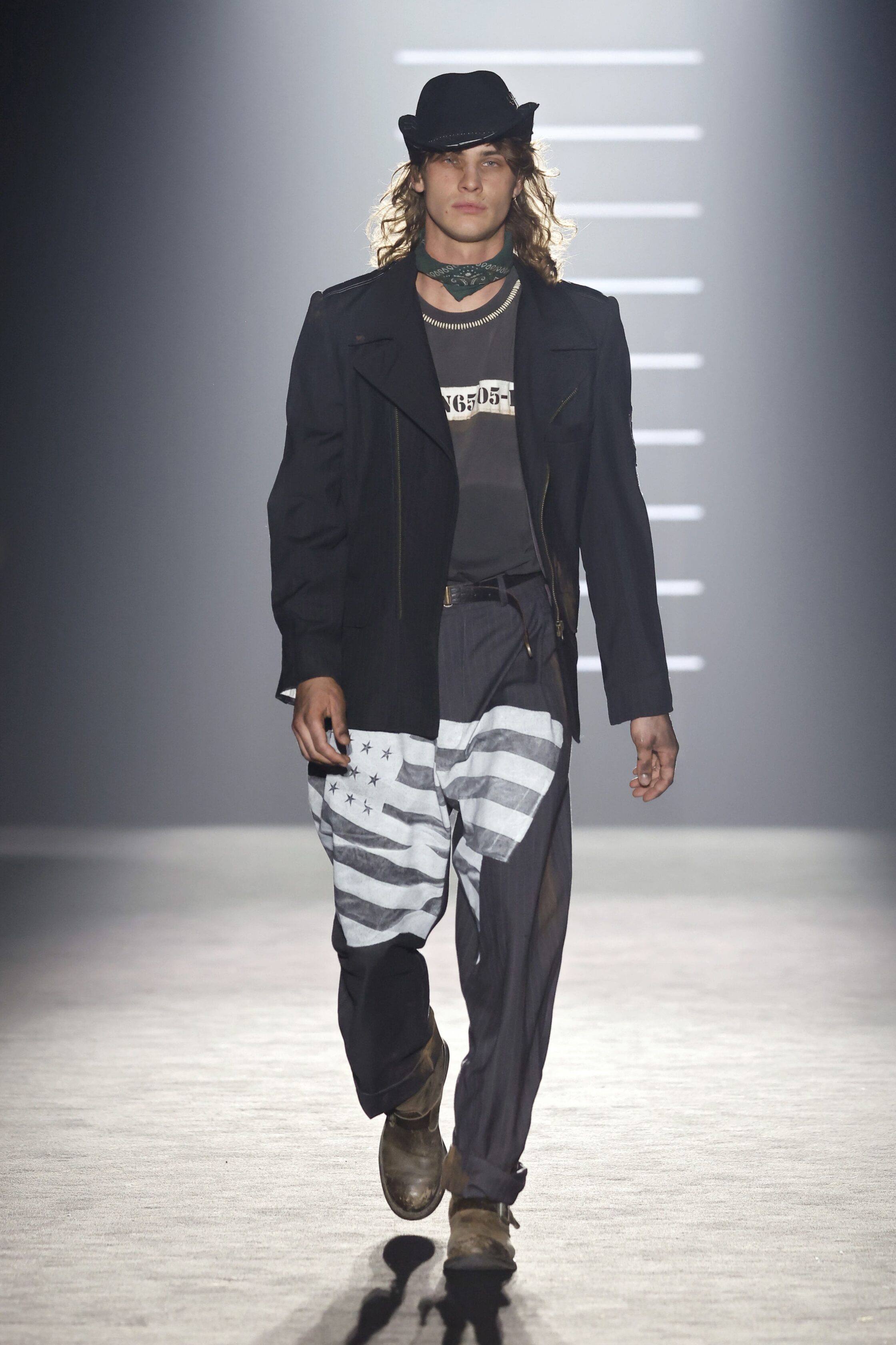 Tailored trousers in 100% Wool fabric with a white USA flag printed in silkscreen on the front. Two welt pockets on the sides and two welt pockets on the back. Tailored waistband.