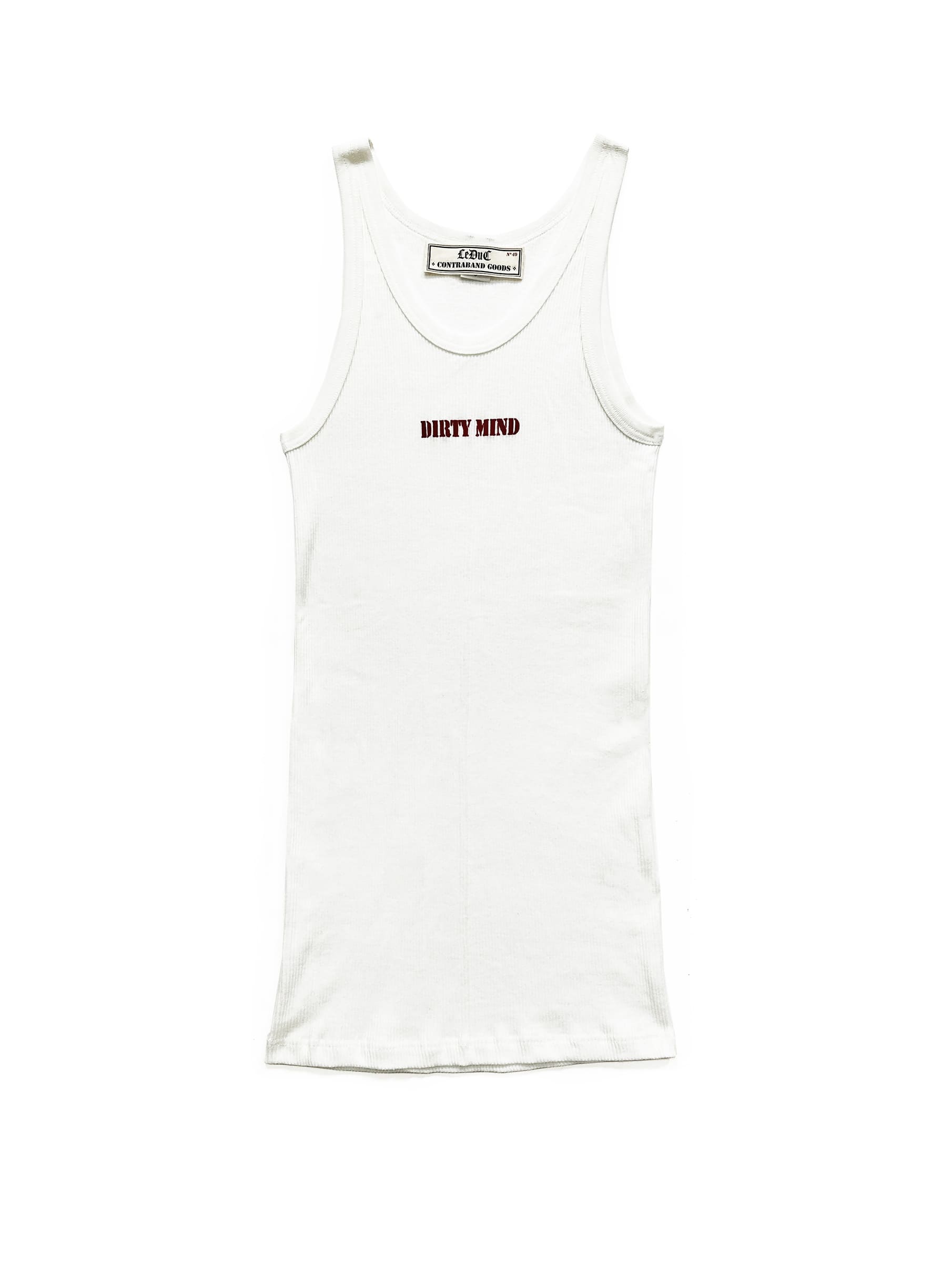 Seductively minimal, fiercely expressive — the Dirty Mind Tank Top is a fitted essential designed for those who embrace their edge with style. The bold “Dirty Mind” silk screen print in deep red commands attention across the chest, using water-based ink that softens with time to create a distinct vintage effect unique to every wearer.